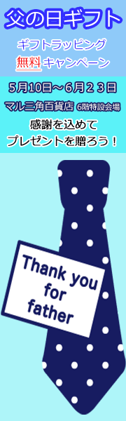 父の日のカラーイメージとして、男性に好まれるブルーを基調に、横バナーと縦バナーをそれぞれ制作しました。 『ギフトラッピング無料』を重要な情報としてデザインしました。