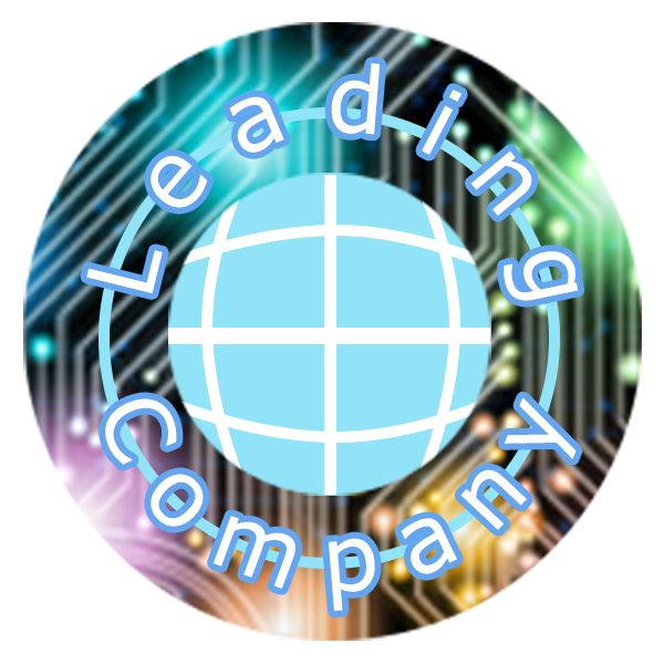 架空のIT企業名『Leading Company』を入れたデザインのロゴです。 『最先端』や『イノベーション』などが連想できるようイメージで作成しました。