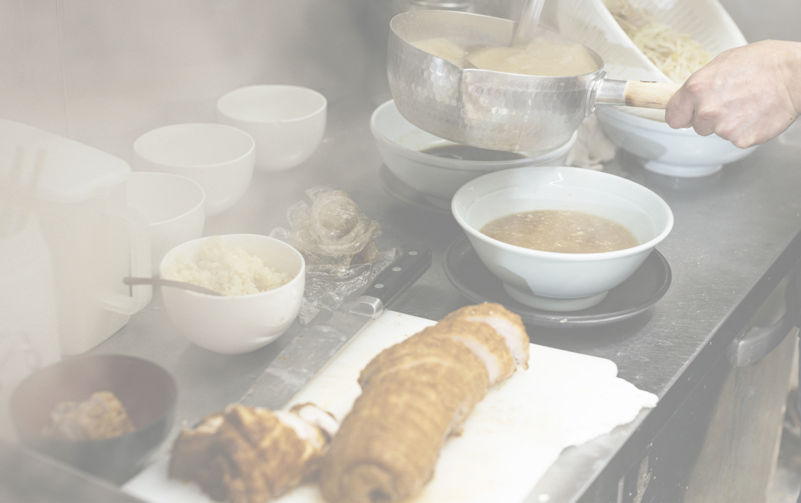 【ダシ】動物素材(豚や鶏)、海鮮素材(昆布や煮干し)、野菜素材(にんにくや玉ねぎ)などを組み合わせることで、独自のダシを取ります。